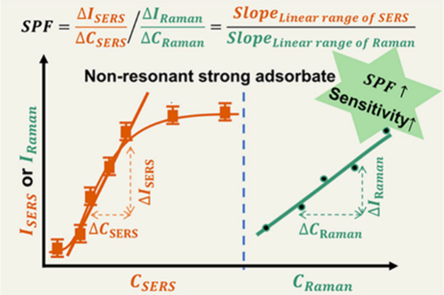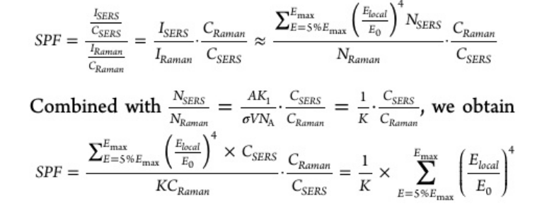 振兴EF的概念,在相同或归一化的测量条件下,取浓度依赖性SERS(低于单层覆盖年龄)与正常拉曼测量值在线性强度响应