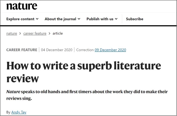 另外一篇则是 2020 年发表于《Nature》期刊(影响因子:50.5)上一篇题为《How to write a superb literature review》的文章。