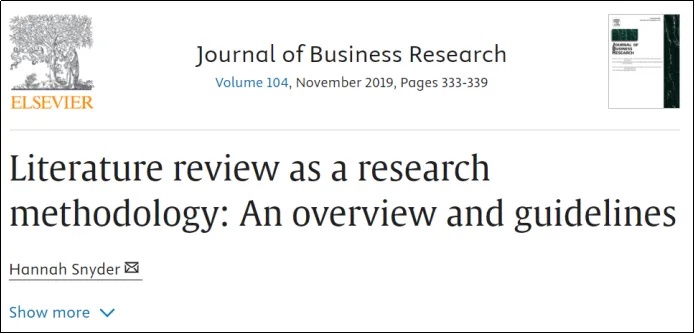 第一篇是 2019 年发表于《Journal of Business Research》期刊(影响因子:10.5)上一篇很好的文献《Literature review as a research methodology: An overview and guidelines》。