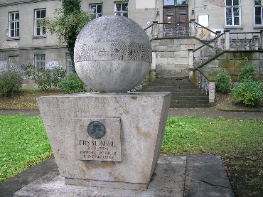 早在1835年,英国科学家乔治·B·爱里(George B. Airy)就提出了“爱里斑”理论:基于光的衍射特性,即使一个无限小的发光点在通过透镜成像系统后,也会形成一个弥散的图案,称为“爱里斑”。爱里光斑在成像平面附近的三维的光强分布被称为光学系统的“点扩散函数”(point spread function,PSF)。随后在1873年,著名的德国科学家恩斯特·阿贝(Ernst Abbe)基于此原理提出了“阿贝光学衍射极限理论”(diffraction limitation),经典的公式也作为其重要成就刻于其墓碑上: