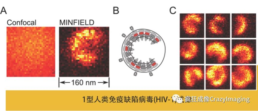 图11 MINFIELD STED 超高分辨率与共聚焦下HIV-1艾滋病病毒颗粒