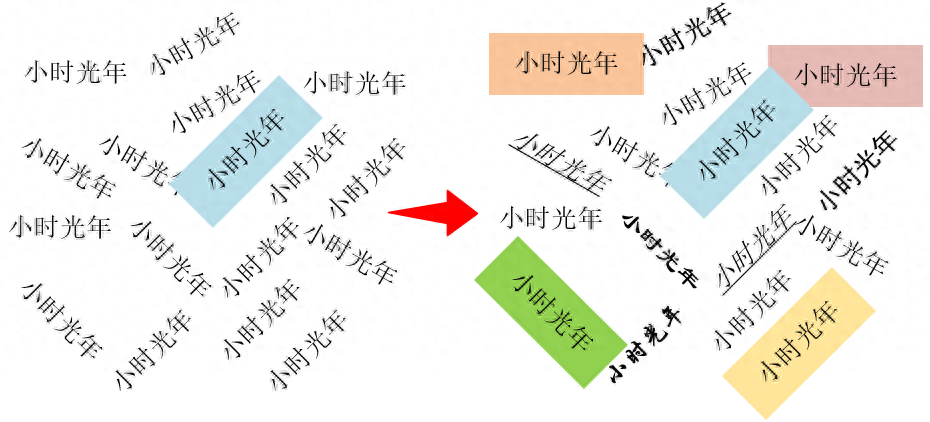 紧接着,我们希望不同的内容具有不同的表达形式,于是有了颜色和字体的差别。