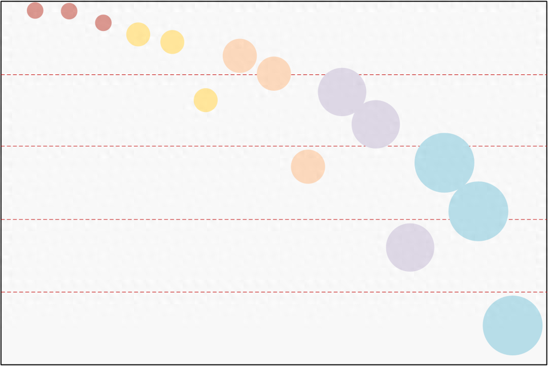 上文介绍了一种多变量数据图的做法,美观简单。同时绘图过程穿插了很多的绘图思路,包括怎样分析数据之间的关系,用什么样的颜色,什么样的大小,除了这些基本的,我们还要注意我们的标注一定是在变化的,因为我们无法保证每次的气泡分布都是这种形式。