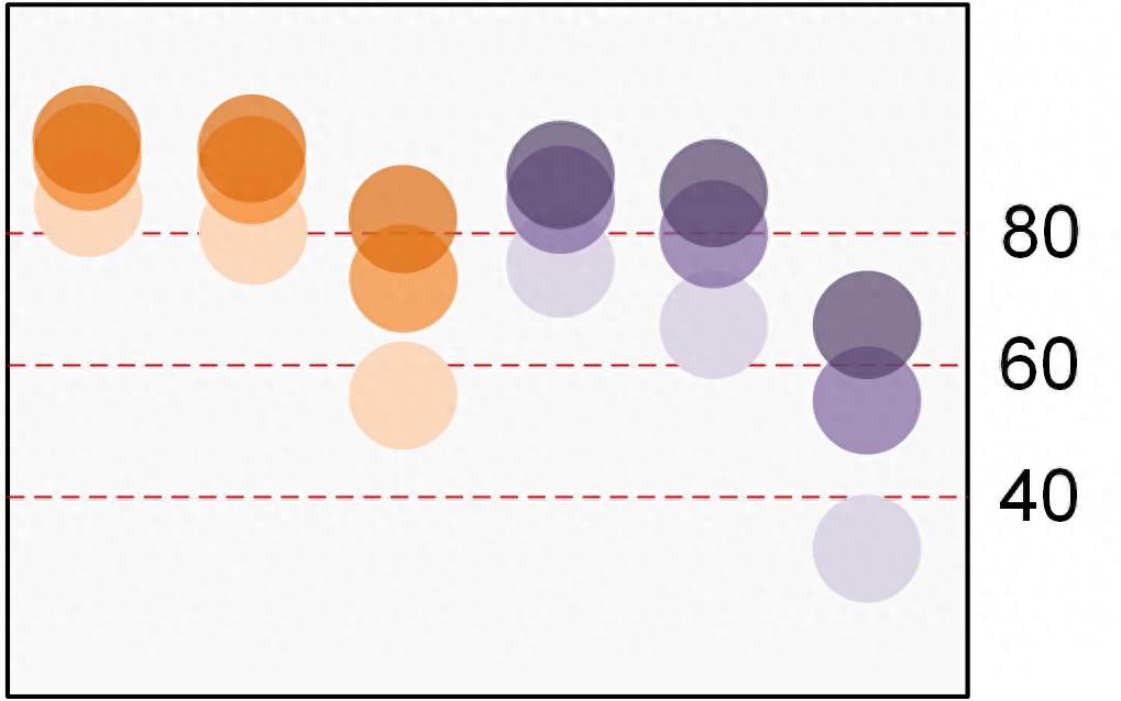 这时候不同的元胞质量之间存在一个轻重的关系,不同的元胞数量存在一个多少的关系,这样我们用普通的二维折线图无法表达出这层意思,尤其是无法表达总质量一定的情况。