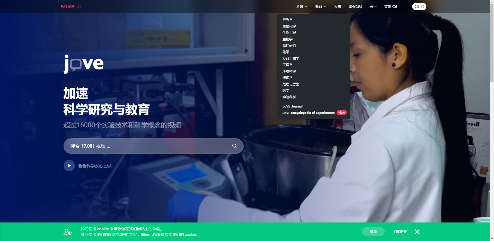 科学领域出版实验视频最多的出版社,致力于以视频方式展现生物学、