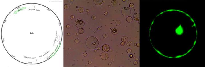 构建载体→制作原生质体+转化质粒→激光共聚焦显微镜观察编辑