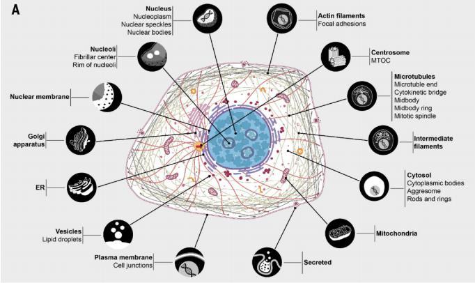 Fig. 人体细胞内的亚细胞结构。Peter J. Thul et al., Nature. 2017.编辑