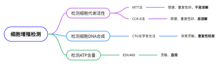 细胞增殖是活细胞重要的生理功能之一,是生物体重要的生命特征,是生物体生长、发育、繁殖以及遗传的基础。检测细胞增殖的能力是评价细胞代谢、生理、病理状况、细胞活性、基因毒性等的重要指标之一。而细胞增殖与多种因素有关,比如细胞代谢活性、与细胞增殖相关的蛋白表达、ATP的浓度等等。