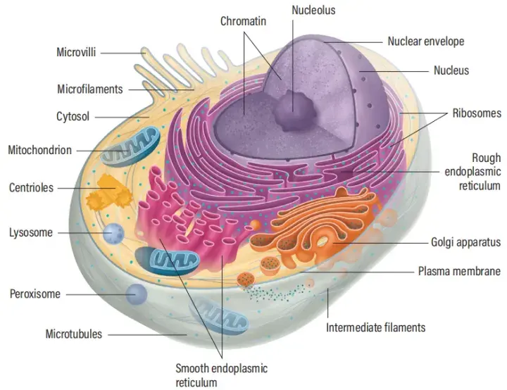 图1 哺乳动物细胞的各细胞器(Davies K., 2020)。