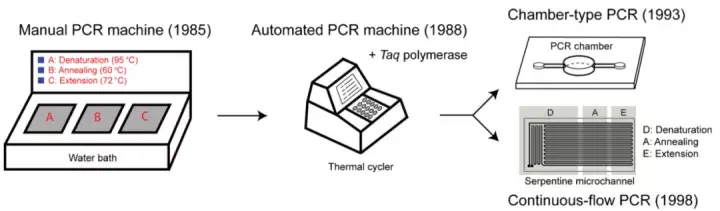 图1 PCR仪器的发展历程(Lee NY., 2018)。