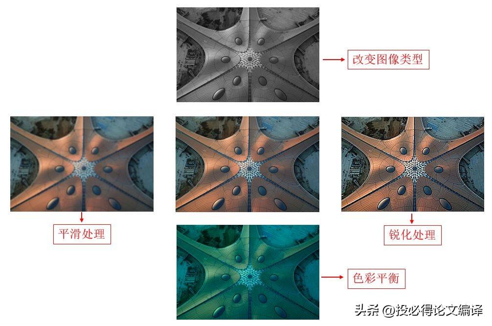 单击菜单【File】→【Open】打开图像文件,以大兴机场图片(中间为原始图片)为例,对图像进行4种基本处理,操作如下:
