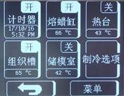 (3)设置温度 HistoStar的“熔蜡缸”、“热台”、 “组织槽”和“包埋模存储槽”都是独立控温的,根据需要可单独设置每个模块的温度。