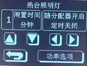 ③按“热台照明灯”按钮,进入“热台照明灯设置”屏幕