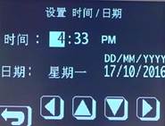 ② 按“菜单”上的“设置时间/日期”按钮,使用方向箭头设定参数。