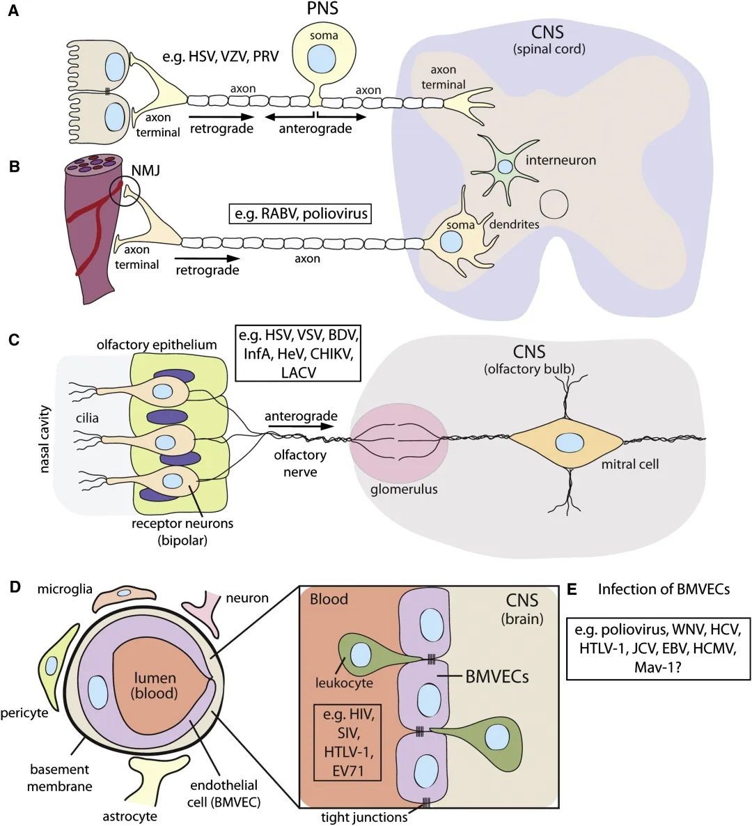 - 单纯疱疹病毒:可引起脑炎、脑膜炎等疾病,感染后激活的免疫炎症反应可导致神经细胞的损伤和死亡。