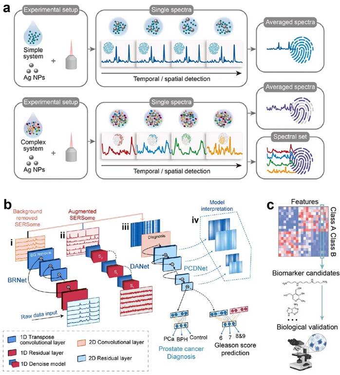 SERSome是一种基于SERS技术的新型代谢分析方法,其使用整个光谱集(可达数百张光谱)而不是单个光谱或少数光谱的平均值,来保存可能捕获的所有分子信息,增强识别生物标志物和分辨不同代谢状态的能力(图7)。