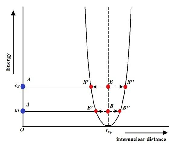式中,k是化学键力常数,反映化学键强弱,键对变形、伸展运动的阻力;µ是双原子分子的折合质量;m1、m2分别代表两个小球的质量。