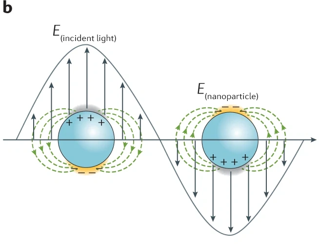 当入射光频率与电子振荡频率一致时,发生局域表面等离激元共振(LSPR),在颗粒附近产生显著增强的电场,从而令处于该场内的吸附分子拉曼散射强度大幅提升。