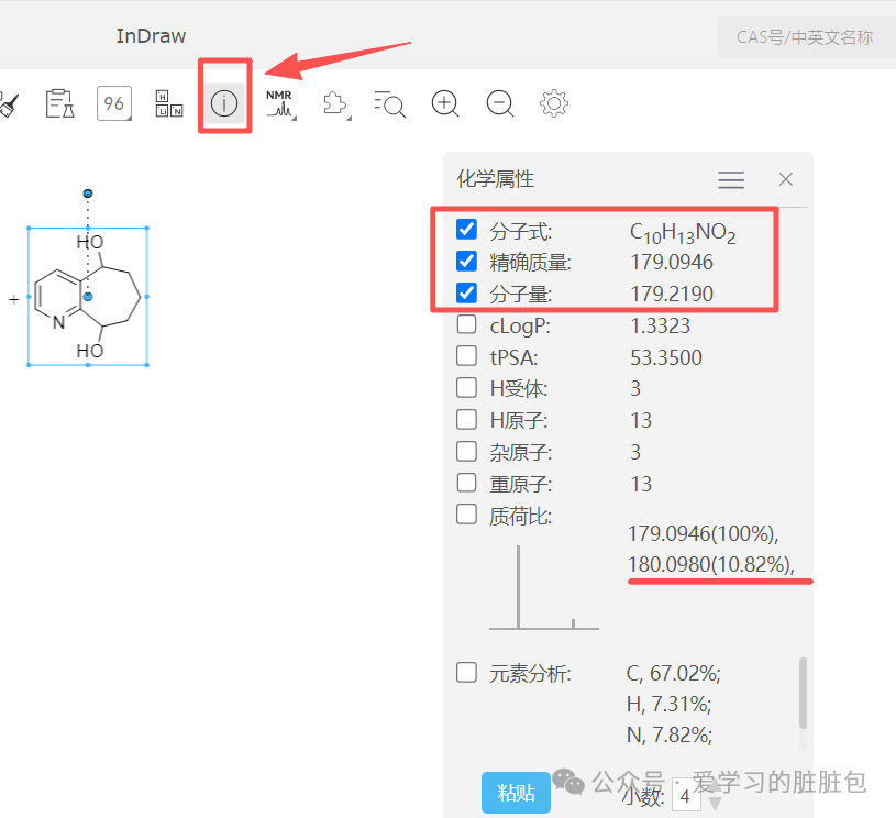 InDraw 同样有分子信息,分子量。分子式等,可以选择粘贴,也可以查看质荷比。