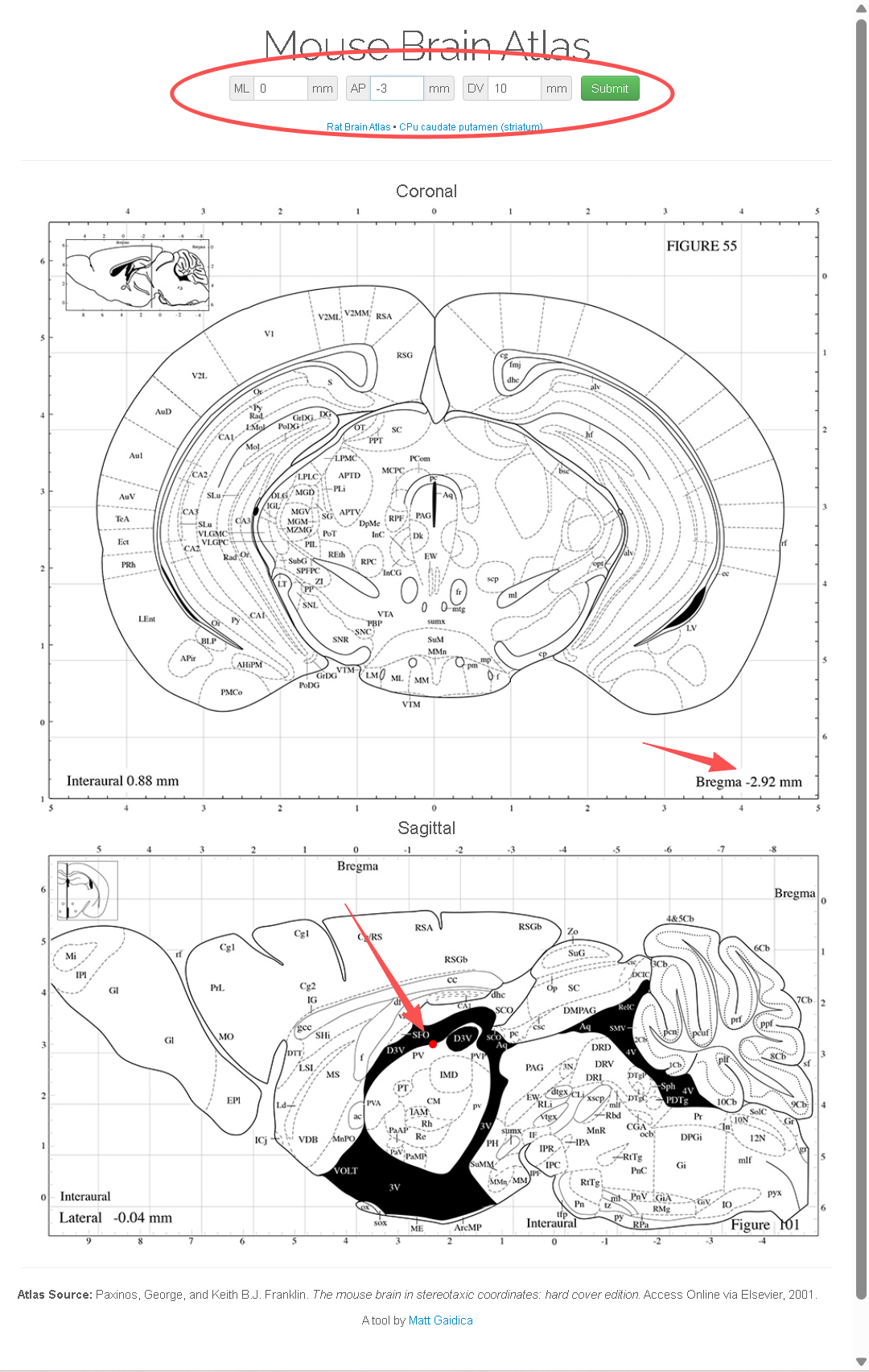 我们首先需要知道目标核团(或脑区)在三维空间中的位置(AP / ML / DV)。