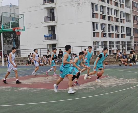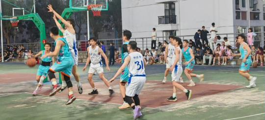 比赛一开始,球场上的师生便火力全开。平日里在讲台上妙语连珠的老师,与思维活跃的同学们默契配合,你传球、我掩护,你突破、我投篮。老师们丰富的经验与同学们充沛的体力完美融合,每个人都在全力以赴!