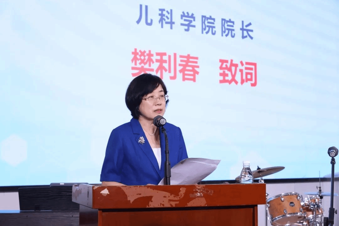 儿科学院院长樊利春在台上为2023级全体新生的到来表示热烈的欢迎和祝贺,并向新生们表达自己的期望与鼓励。同时,樊院长对新生提出几点希望,第一,要有底气,勤奋好学,扎实根基以求行稳致远;第二,要有志气,锻造品格,志存高远以求乘风破浪;第三,要有朝气,昂扬进取,拼搏向上以求梦想绽放;少年何妨梦摘星,敢挽桑弓射玉衡,希望同学们在taptap点点的校园里插上梦想的翅膀,向着远方坚定翱翔。祝愿2023级全体新生在未来五年的学习和生活中,能够不断进步,一起朝着一个更加光亮的未来出发,实现自己的梦想。