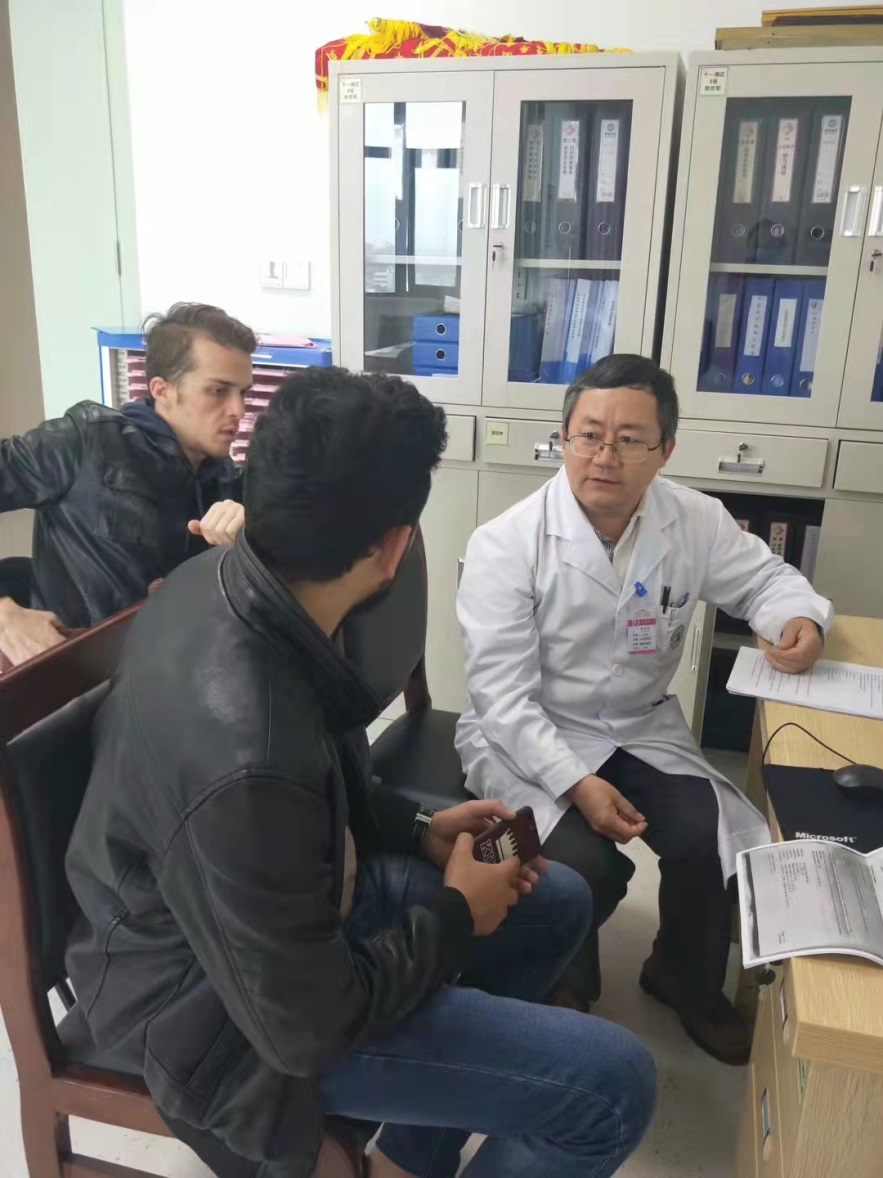 本人与卡塔尔病人家长交流