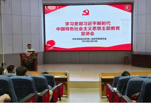 2023年5月25日下午,第二临床学院学习贯彻习近平新时代中国特色社会主义思想主题教育宣讲会在多功能报告厅进行,宣讲会由马克思主义学院袁曦教授主讲,我院庞小曼副书记主持,行政工作人员、辅导员,以及在校学生近200人参加。