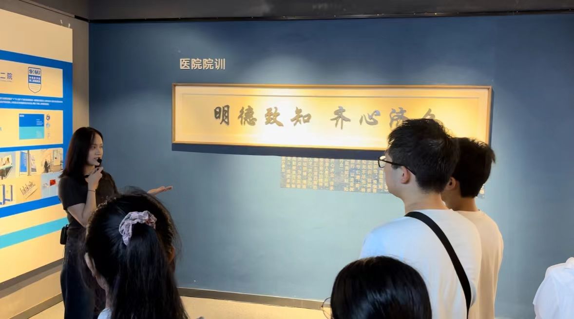 紧接着,医院宣传科高佳怡老师带领新生在院史馆内参观,在高老师生动的讲解中,新生对医院的发展脉络逐渐明晰,也对“明德致知,齐心济众”的院训有了更深的体悟。