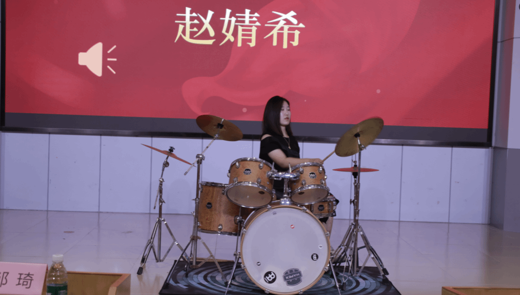 比赛开始前,赵婧希同学为我们带来了精彩的架子鼓表演《逆战》,她的鼓点激昂有力,瞬间点燃了现场的氛围,为本次比赛正式拉开帷幕。