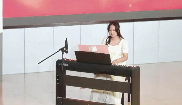郝彤彤同学在所有参赛者朗诵结束后以精湛的琴艺演奏了《灯火里的中国》钢琴曲,旋律悠扬,情感饱满,为活动画上圆满句号,赢得在场观众热烈掌声。