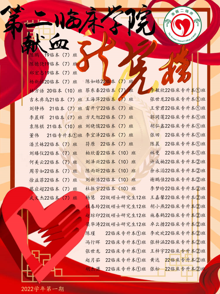 第二临床学院无偿献血光荣榜第一期
