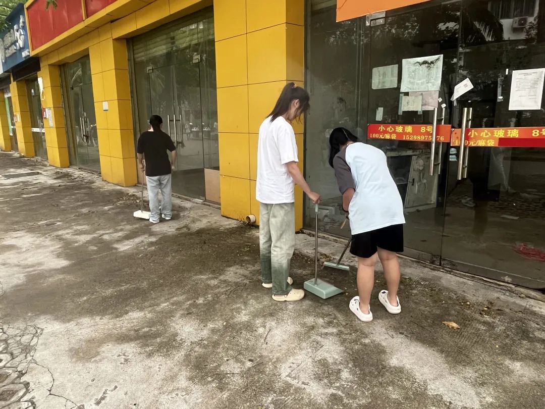 志愿者在商业街进行大扫除,其中包括清扫过道,清理白色垃圾等。