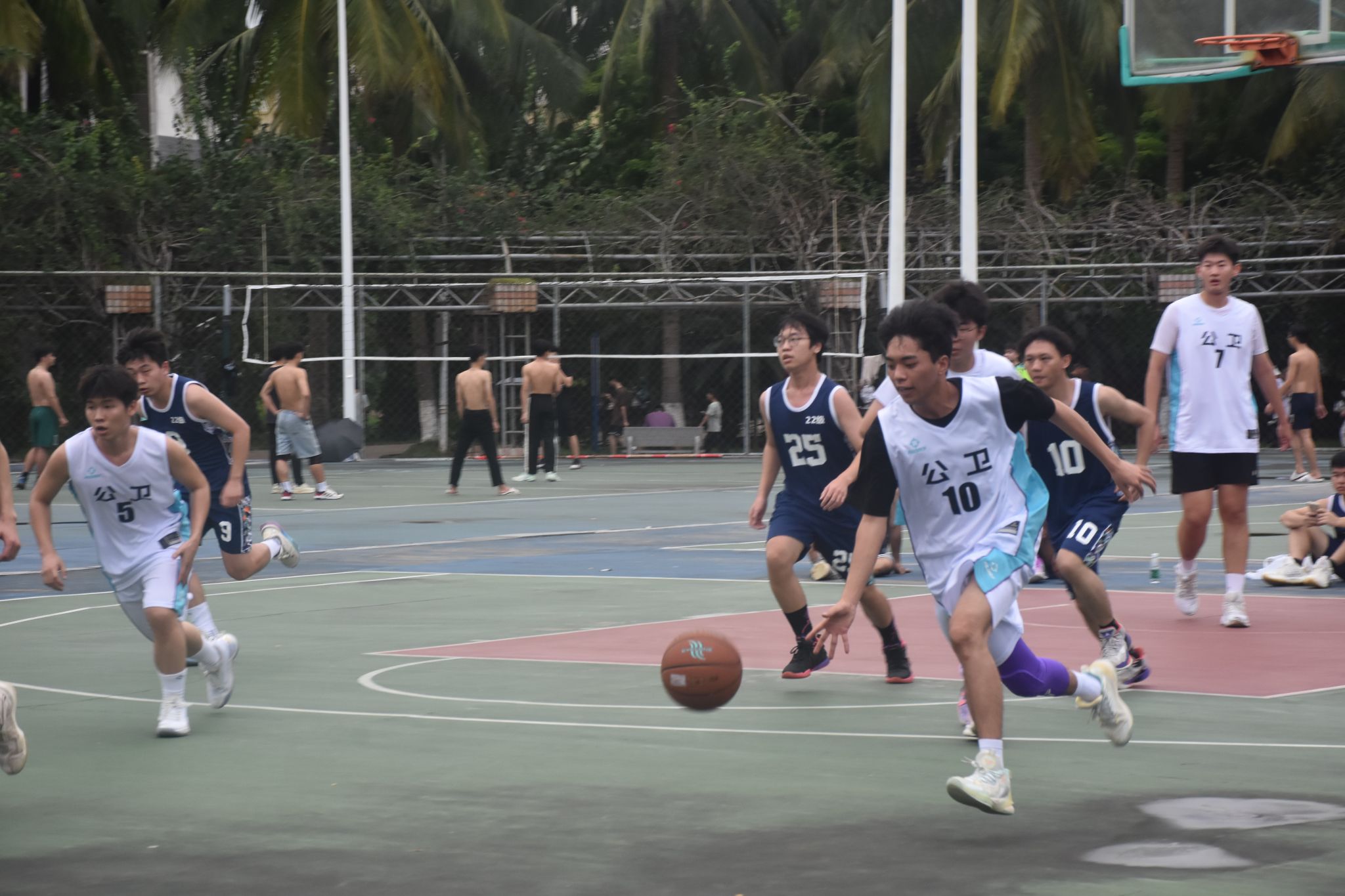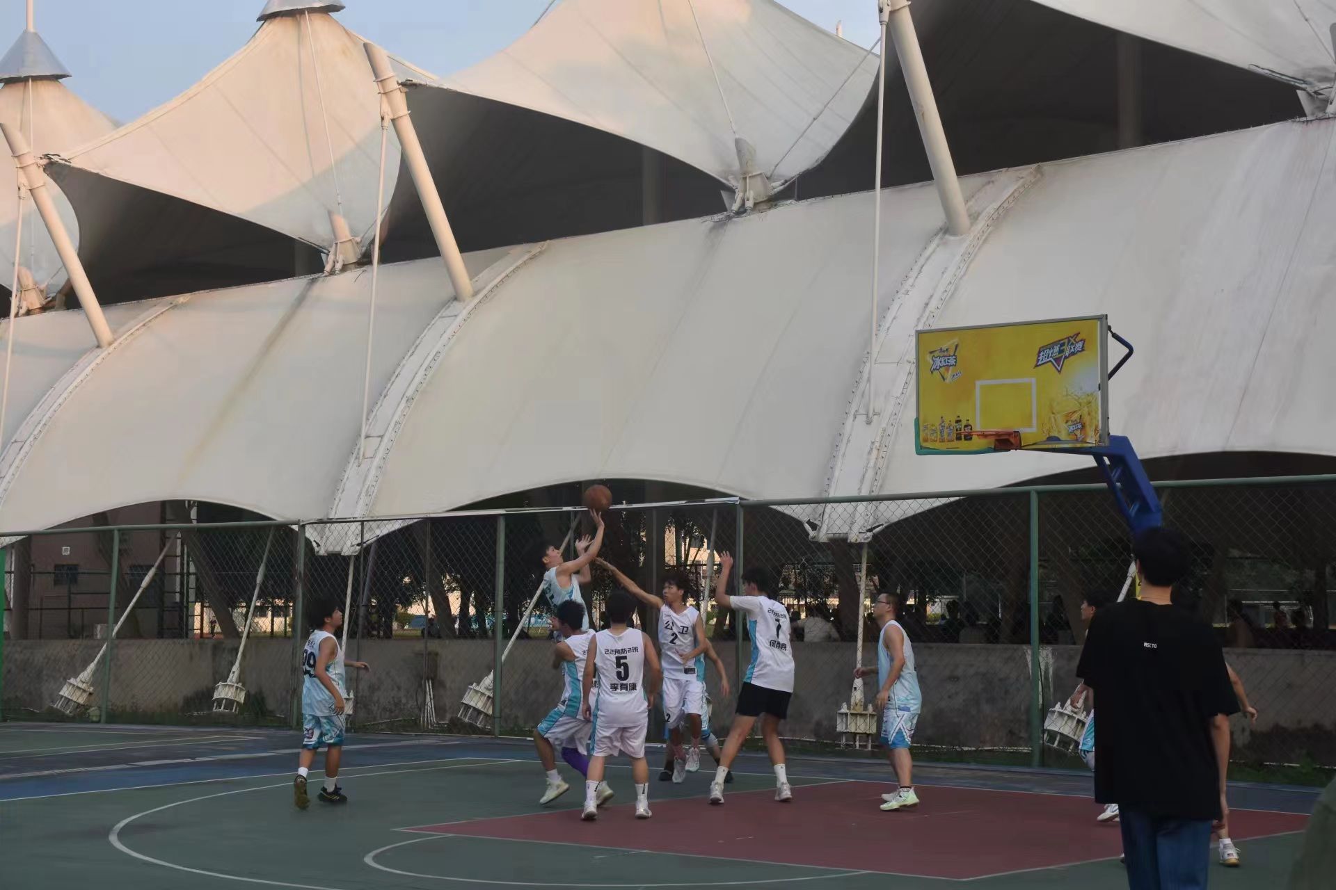 场上队员们在赛场上挥洒汗水,展示自我,场下拉拉队热情高涨,团结友爱,让篮球赛氛围不断升温。在比赛过程中,裁判员秉公执法,严肃认真,尽自己最大的努力判决好每一个球,保障了比赛的公正性、连续性和观赏性。工作人员积极做好后勤保障工作,各班运动员本着友情第一,比赛第二的精神赛出风格,赛出水平。
