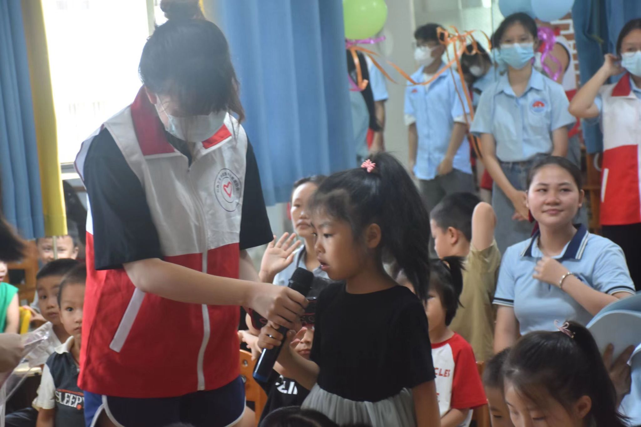 演讲者向小朋友提问并发放奖品