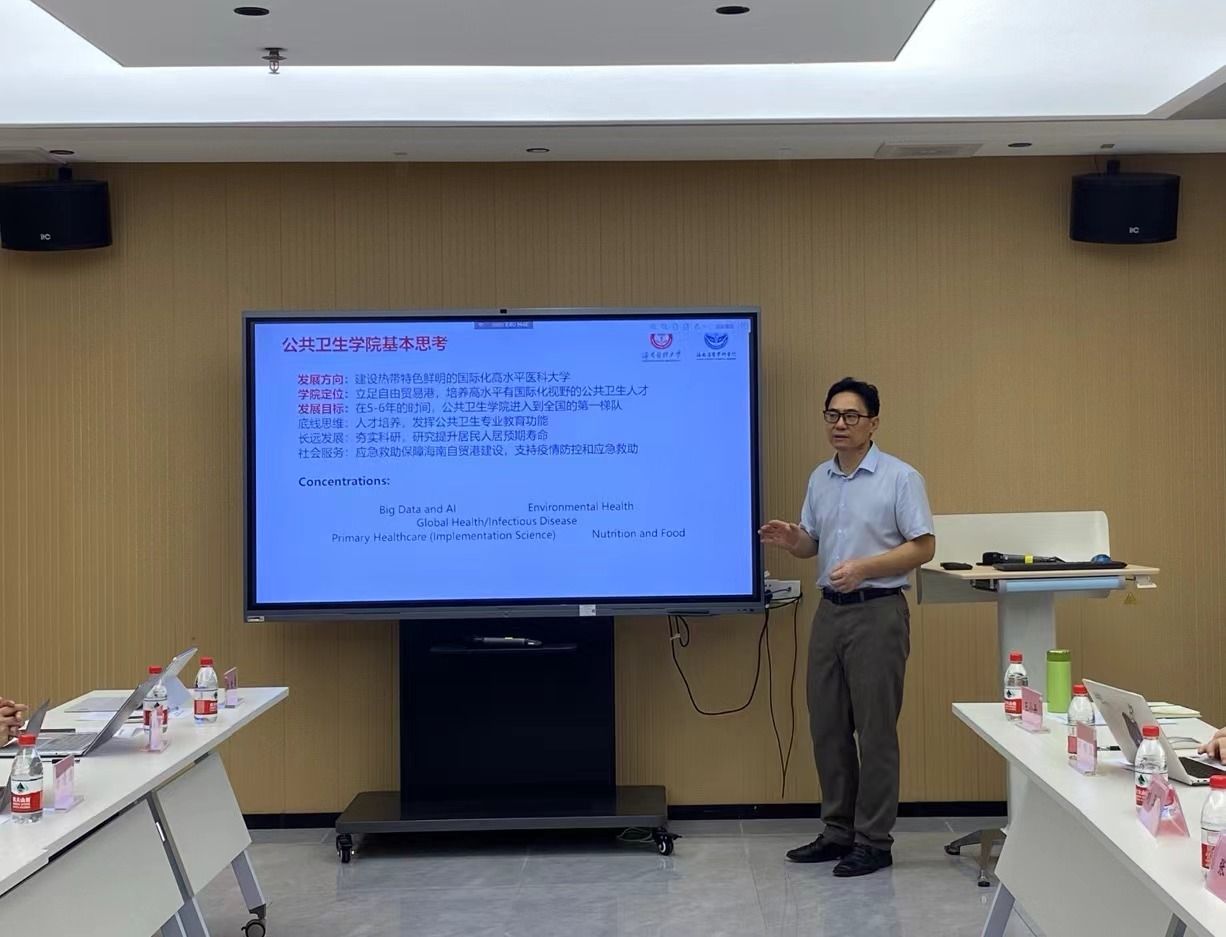 随后,复旦大学公共卫生学院陈英耀副院长介绍了复旦大学公共卫生学院的师资队伍建设,并从学院发展历史及概况、人才培养、科学研究、社会服务、文化传承与创新、学科平台、师资团队与能力建设等方面进行了分享交流。他希望双方相互学习,发挥优势推动进一步的交流合作。