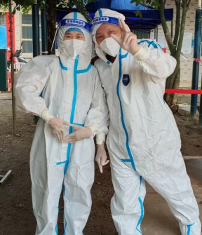 戴雨杉:“在志愿活动中面对过不被调查人员理解、听不懂当地语言等问题,在大家集体讨论下,这些问题最后都迎刃而解。让我感受到前所未有的安全感,也更加坚定本次任务一定能够完美完成,早日迎来社会面清零。”
