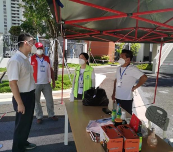 与此同时,奋斗在战“疫”一线的志愿者们,也深深牵动着学校领导的心。学校领导也无时无刻不在关心着他们,指挥各部门积极筹措物资、药品,源源不断送到在抗疫一线的志愿者手中,把温暖和关怀送到志愿者的心坎里。8月24日,党委副书记张巍、公共卫生与全健康国际学院院长宁毅来到肖莎工作的点位看望她,给她带去了杨俊书记、赵建农校长及全体学校领导班子和全体师生的关心和问候,表示学校是一线志愿者的坚强后盾。