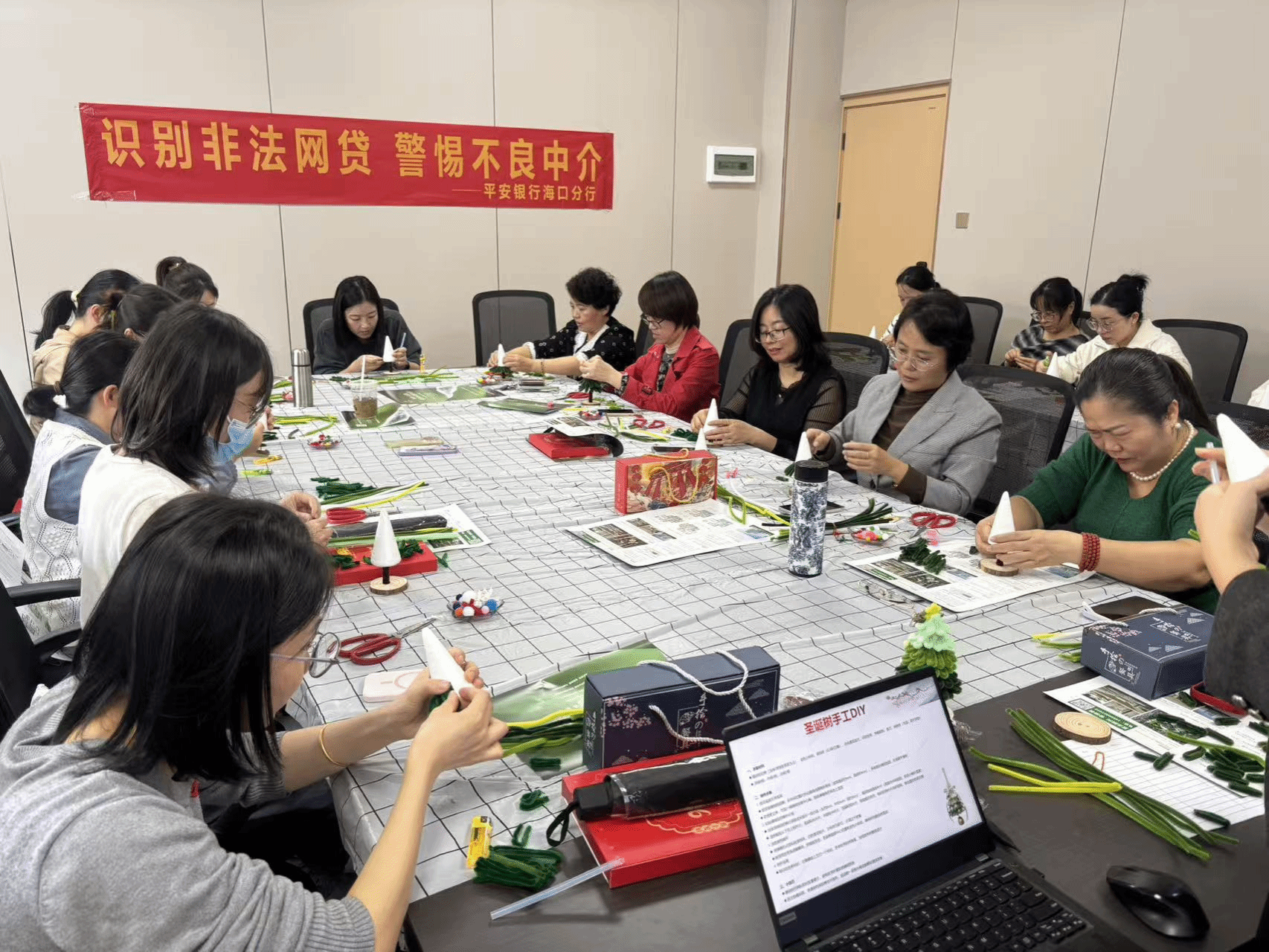 活动现场暖意融融、氛围感拉满。平安银行工作人员提前精心布置场地,备齐了色彩鲜艳的扭扭棒、彩纸、胶水等丰富的手工材料。在银行工作人员的专业指导下,教职工们围坐一堂,全神贯注投入创作。剪裁、粘贴、编织……大家充分发挥创意巧思,将普通的手工材料逐步打造成一个个精致可爱的小物件。活动过程中,欢声笑语不断,同事们相互分享制作技巧,主动帮忙修饰作品,在动手实践中分享快乐,在互帮互助中拉近心与心的距离,尽显团队温情。