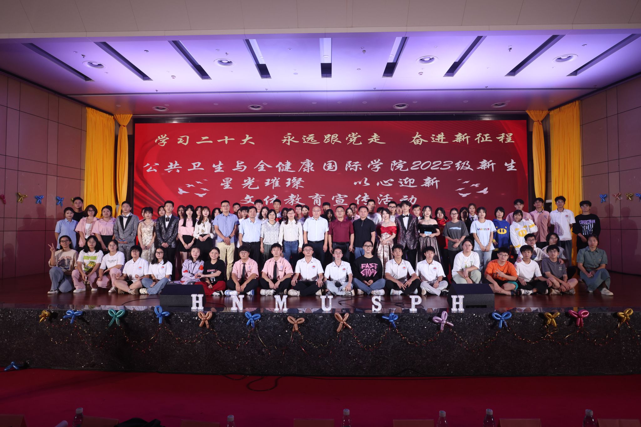 恰逢学校第四次党代会胜利召开,寄望于新时代青年建新功,深入开展学习贯彻习近平新时代中国特色社会主义思想主题教育。11月12日晚,我院在国际报告厅举办“星光璀璨,以心迎新”文体教育宣传活动。学校学生发展与创新创业指导中心余伟新主任,学院党委刘云儒书记 ,李伟斯副书记,学生工作处余丽老师,学院部分教师、班主任和辅导员,以及2022级、2023级全体学生一同参加活动。
