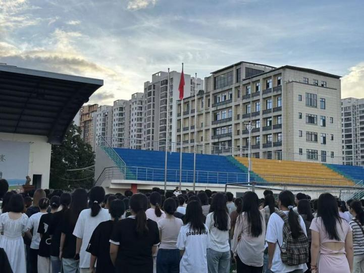 晨光初露,激昂的《义勇军进行曲》响彻全场。伴随着这凝聚民族精神的旋律,五星红旗迎着朝阳冉冉升起,师生们屏息肃立、目光灼灼,注视着鲜艳的旗帜攀升至旗杆顶端。这场升旗仪式,既是对祖国母亲的庄严礼赞,更是全体公卫学以青春之名向本科教育教学审核评估郑重宣誓的出征仪式。
