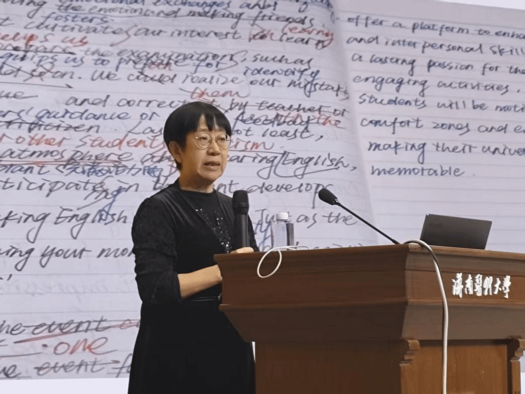 培训前,王老师通过问卷调查,精准把握学生在备考中的难点与薄弱环节,为后续精准指导奠定基础。针对普遍反映的听力与写作两大难点,她结合实例重点讲解,并借助互动激发学生参与热情。