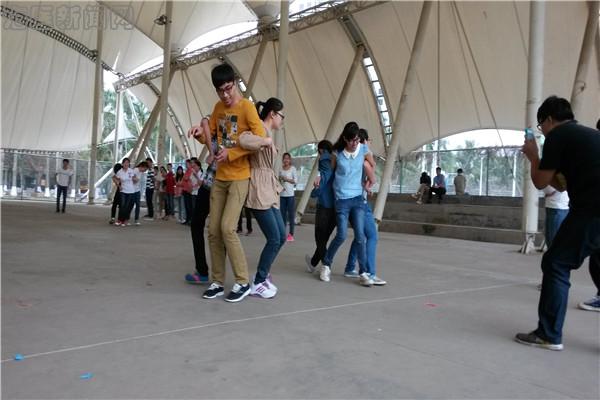 本次女生节以“那些年,我们一起过女生节”为活动主题,以班级为单位,每组7人,4女3男,活动是以每个游戏积分制,最后以最终得分排名,活动中又包括3个游戏:一是人数队形,“组员围成一个圈,做出以裁判指令相反的动作,看谁坚持到最后”;二是三人夹气球,“每组派出3人,以背靠背姿势把气球夹在中间,从起点走向终点,时间最短的得分最高”;三是团体游戏串烧,“需要每组派出4名同学,第一名成员同时掷骰子,掷到一点或者六点则做五个深蹲,完成以后跑到本组第二名同学处与其击掌,第二名同学击掌后闭眼原地旋转三圈,然后向远方的桶内投掷乒乓球,投进十个乒乓球后与第三名同学击掌,第三名同学击掌后将一定距离处的气球弄破,然后在回到原地”。最终,14预防(2)班夺魁。