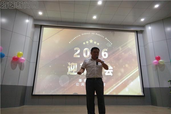 伴随着裴浩同同学的一曲钢琴独奏,迎新晚会正式开始。舞蹈《玉生烟》的古典,小品《纳新》的幽默,歌曲《If you》的十二国语言,感染并带动了同学们的热情。晚会开始一段时间后,进行了“击鼓传花”游戏环节,很好地拉近了同学们的距离。随后,动感的舞蹈串烧《HIPPIE PUNK》,婉转的歌曲《Everytime》,写实的话剧《大学≠爱情》,动听的歌曲《情歌王》,更是将现场的氛围推向了高潮。接着是抽奖环节,抽取了三位参与实时微信讨论的幸运观众,点燃了同学们参与晚会互评的热情。晚会除了唱歌跳舞,怎能少得了魔术的助兴。高贝瑶同学的魔术表演让现场观众发出一次又一次的呐喊。为了迎接新生,15级的学长学姐们也精心准备了节目。15级预防学姐演唱的《红玫瑰》让观众们赞叹不已,15统计班全体同学的合唱《和你一样》唱出了难忘的回忆。晚会接近尾声,蔺东伟书记发表了讲话。他首先感谢所有参演人员和后勤人员,他说虽然表演略显稚嫩,但同学们的认真付出让他感动,同时指出大学不光是学习知识的地方,还是综合发展的地方。他希望同学们发掘自身潜力,全面发展,努力学习,快乐成长,为公卫学院贡献力量。最后,在老师们的即兴演唱中,晚会完美结束。