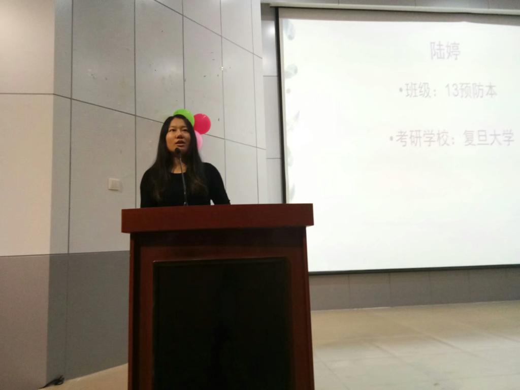 本次活动共分观看公共卫生学院考研风采集锦、宣读表彰文件并为优秀考研学子颁奖、学生代表发言、教师代表发言、自由问答、领导总结发言等六个环节。