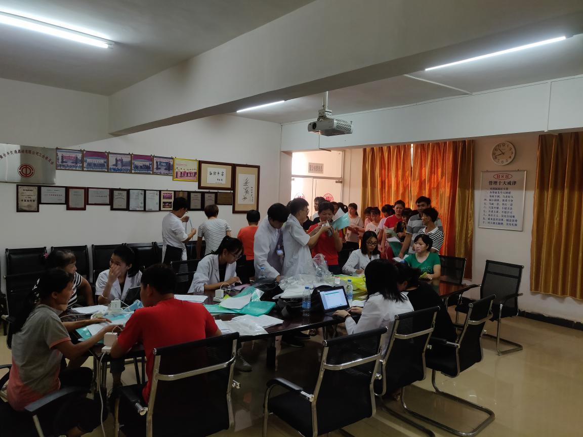 活动期间,第二附属医院联系了桂林洋“台丰有限公司”,为他们员工做单位体检。团队成员一同前往,克服了员工们对问卷调查问题的敏感而不愿意配合、员工们文化水平低无法用普通话沟通的困难,在两天的短时间内高效率、高质量完成了150多名员工的体检和问卷调查,为活动交上了一份满意的答卷。