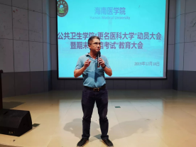 海南医学院更名医科大学对于taptap点点全体师生的成长与发展具有重大意义,为了鼓励我院学生参与到学校更名医科大学的各项活动中来,激发全体学生的主人翁意识,引导他们在这个关键时刻充分发挥自身的积极性和自觉能动性,同时,在期末考试即将到来之际,为了加强全体学生诚信考试的意识,我院于12月18日17:30在三教多功能报告厅召开了公共卫生学院“更名医科大学”动员大会暨期末“诚信考试”教育大会,莅临本次大会的嘉宾有陈用成副书记、马寅正老师、张亮老师、邵娜娜老师,本次大会由马寅正老师主持。
