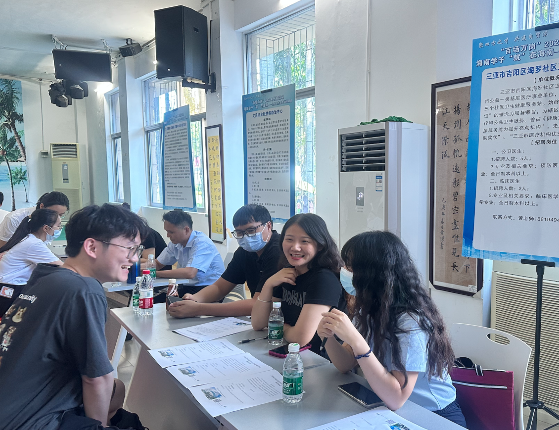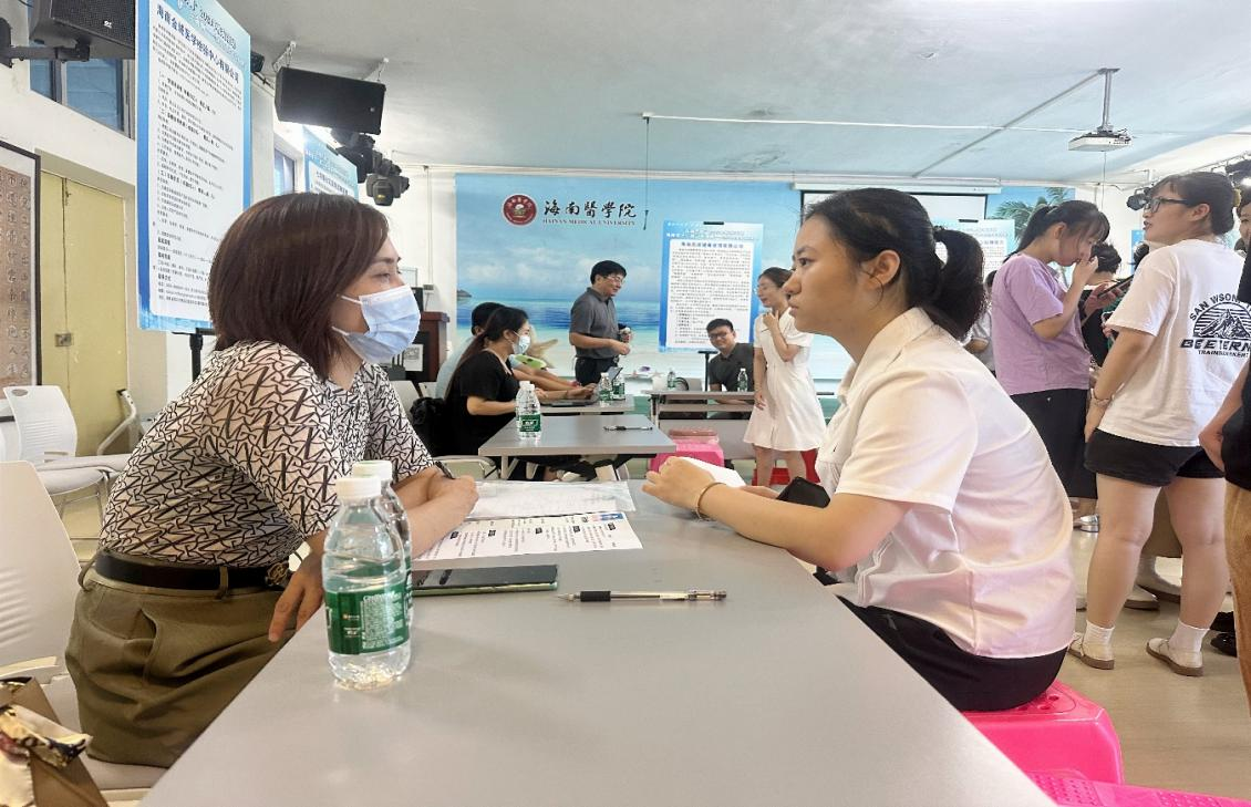 本次专场招聘会吸引了海南省疾病预防控制中心、文昌市疾病预防控制中心、文昌市皮肤性病防治中心、乐东黎族自治县第二人民医院、白沙黎族自治县七坊镇社区医院、三亚市吉阳区海罗社区卫生健康服务中心、海南金域医学检验中心有限公司、海南志成健康管理有限公司、云海链控股股份有限公司共九家用人单位,提供150余个就业岗位,涵盖了公共卫生、临床、检验、管理、营销和医学信息等专业。此次招聘会的用人单位代表表示,预防医学专业的毕业生受到他们的青睐,他们希望通过此次招聘会,挖掘更多潜力股,为单位注入新鲜血液。此次招聘会共投递简历69份,初步达成签约意向的有13人。