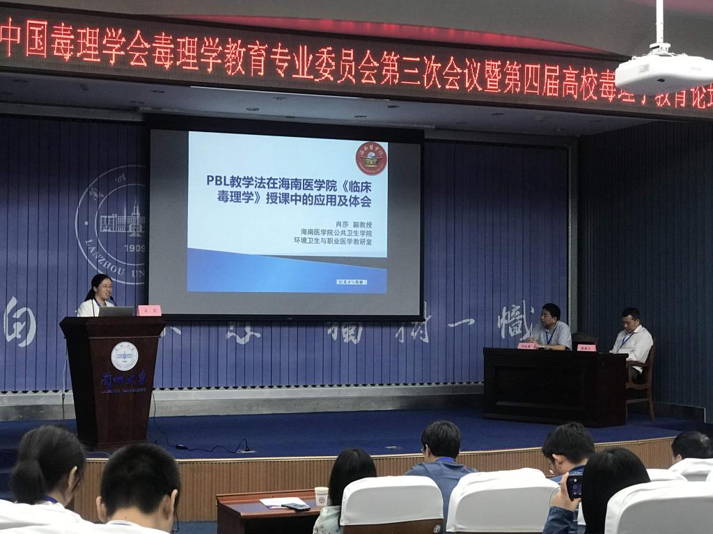 除参加比赛获奖外,肖莎老师受姜岳明主任委员的邀请作大会报告,题为“PBL教学法在海南医学院《临床毒理学》授课中的应用及体会”。肖莎老师详细介绍了《临床毒理学》这门课程在海南医学院的建设和教改情况,包括具体的开课情况、课程安排、PBL教学法的实际应用情况、PBL教学效果、PBL教学总结等,并与同行们深入切磋。