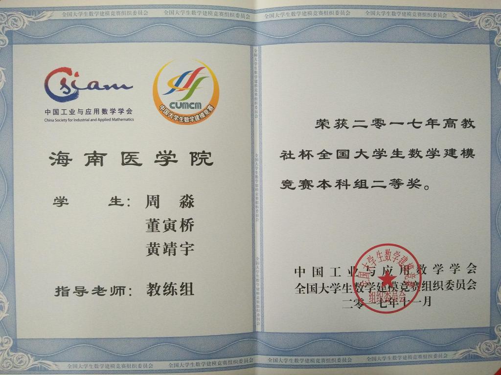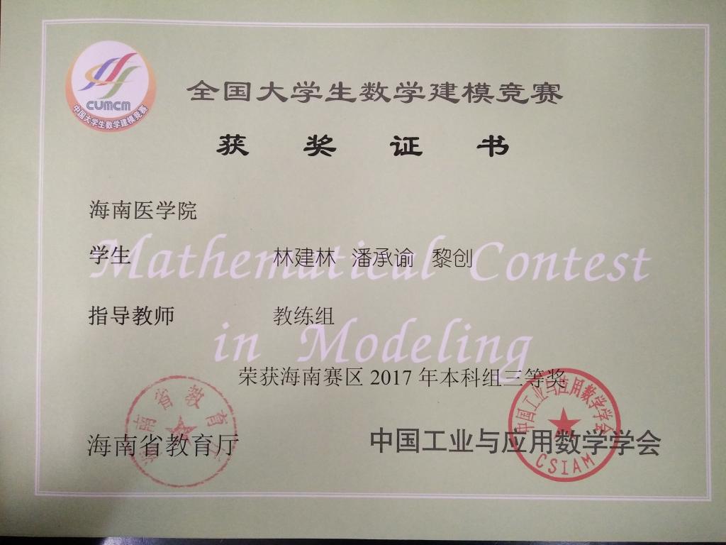 由教育部高教司和中国工业与应用数学学会联合主办的2017年“高教社杯”全国大学生数学建模竞赛于2017年9月14日至9月17日举行,竞赛获奖名单于11月5日公布。taptap点点选派的9支参赛队伍取得辉煌成绩,共荣获全国二等奖1项,省级一等奖1项,省级三等奖2项。其中公共卫生学院周淼、黄靖宇、董寅桥小组荣获海南赛区一等奖和国家二等奖,林建林、潘承谕、黎创小组荣获海南赛区三等奖,陈倩、冯文宇、朱佳佳小组荣获海南赛区三等奖。